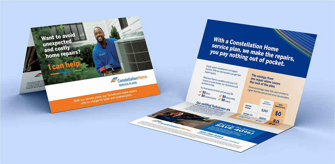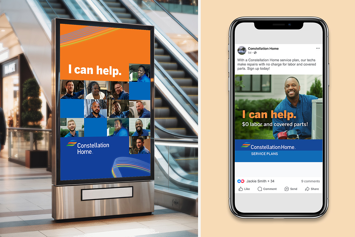 We’re also using technician photos and “I Can Help” messaging in all marketing channels — direct mail, digital ads, social posts, and throughout the Constellation Home website.